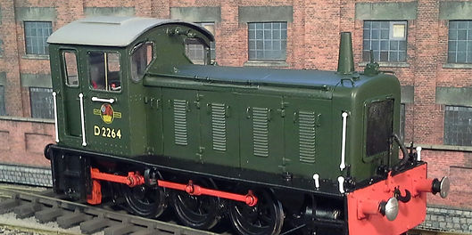 Made from a Vulcan Kit, fresh out of the workshop is 04 shunter D2264 in a post 1958 livery before yellow wasp stripes.Looks and runs loverly